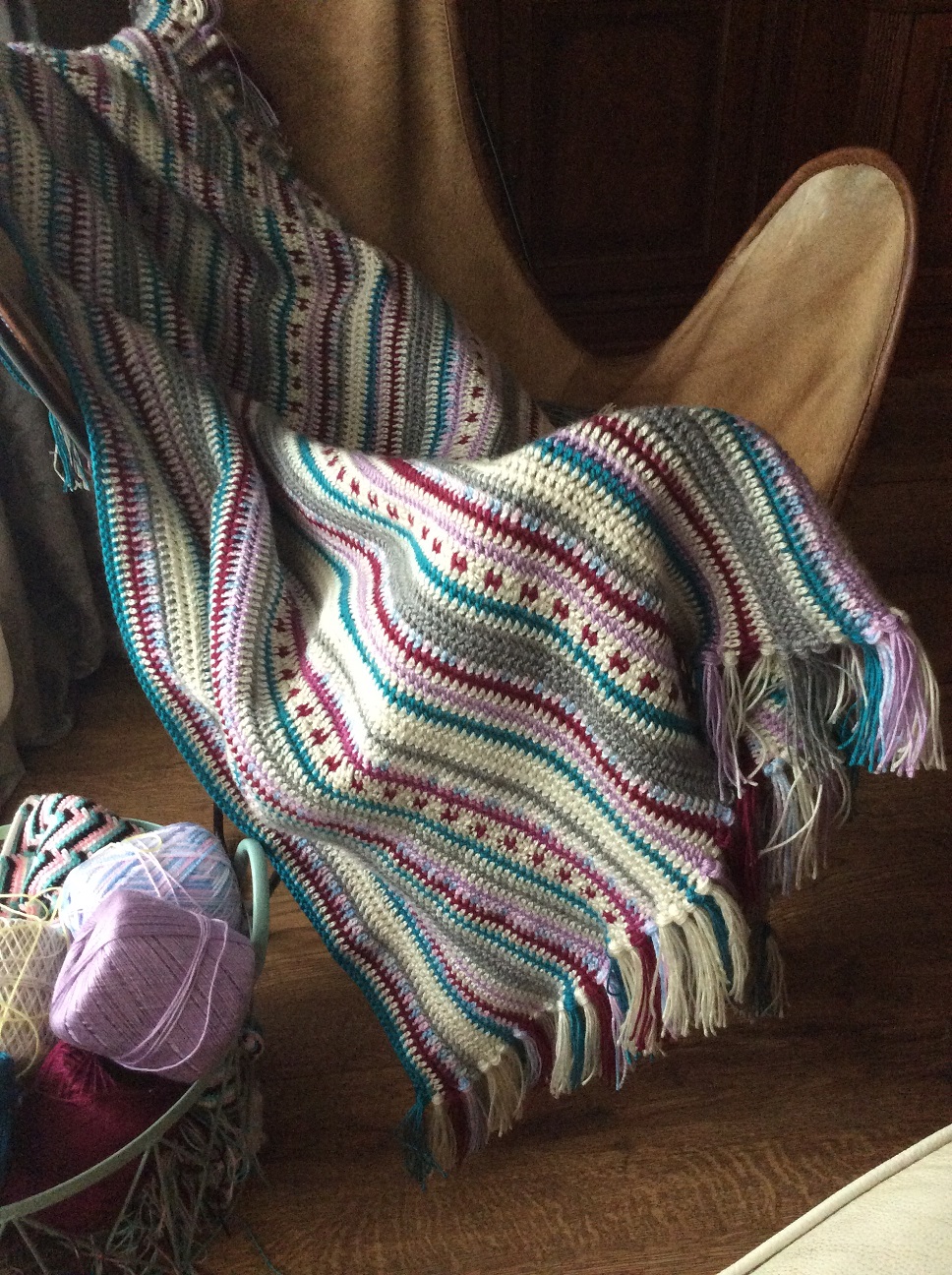 Mi manta no es tan grande, no llega al 1´50 porque la he hecho con hilo mas fino, aún así hay opciones de ampliación también en la misma página y que estoy pensando en hacer.